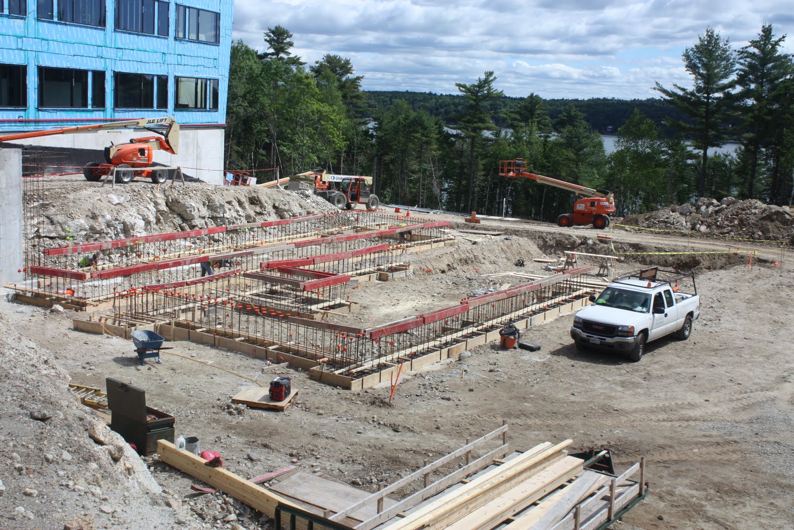 I have to apologize for not having this Blog updated, I have been away for several weeks. So Hopefully you all can now catch up with the project. It has been moving along at a really good pace in my absence. Its getting more difficult to show big changes now that most of the work has moved indoors, but there are still some good images coming out of the building. Also please notice that site work has begun in preparation for the 2nd building. The second building is the Bigelow Center for Ocean Biochemistry & Climate Change. This Building is funded by a grant from the National Science Foundation.